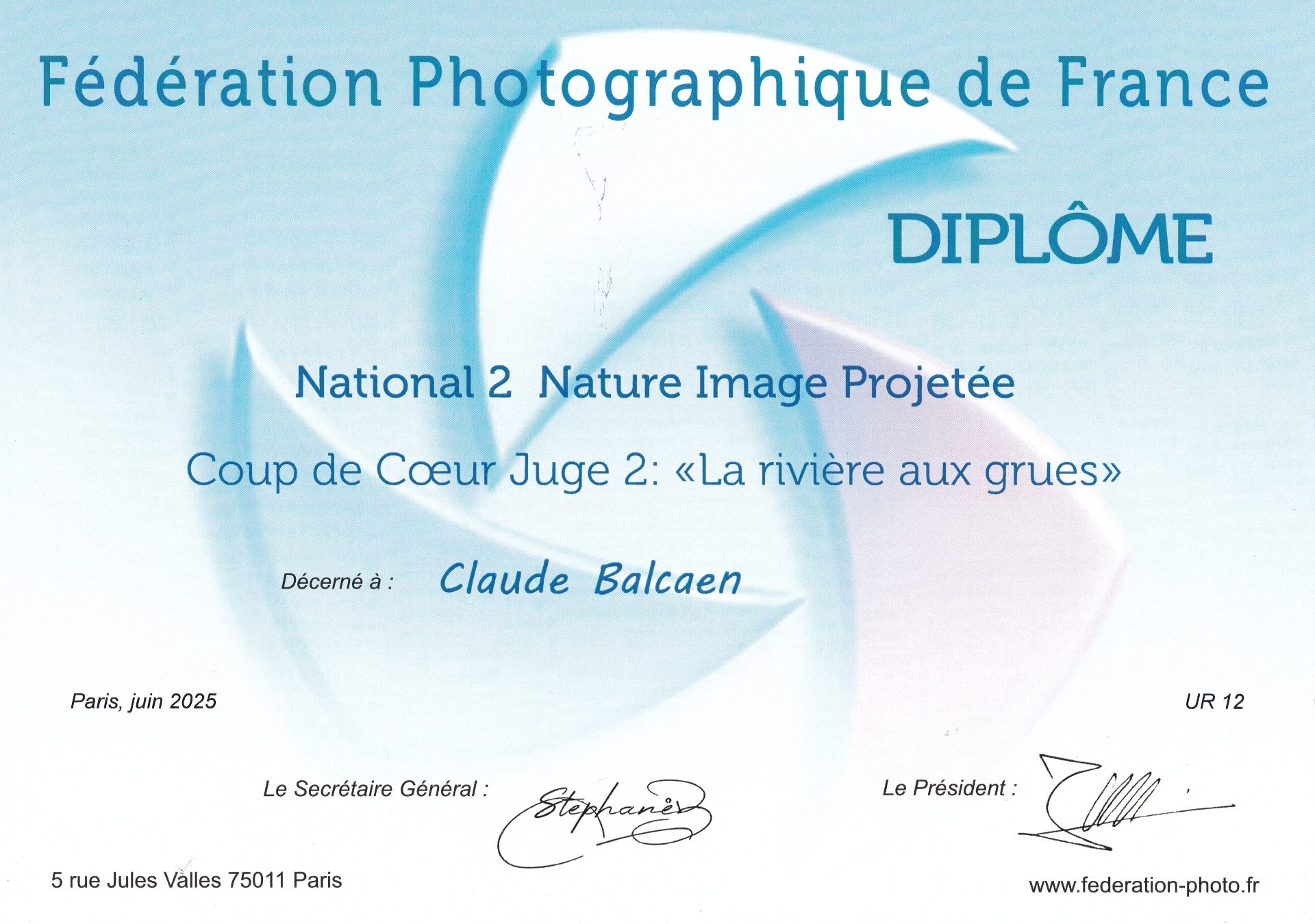 Félicitation à René REY, pour sa 5e place et  à Martine BALCAEN, Serge Maillard, (leurs photos seront jugées en Nationale 2) Claude BALCAEN et Catherine GADAVE pour leur 24eme place.