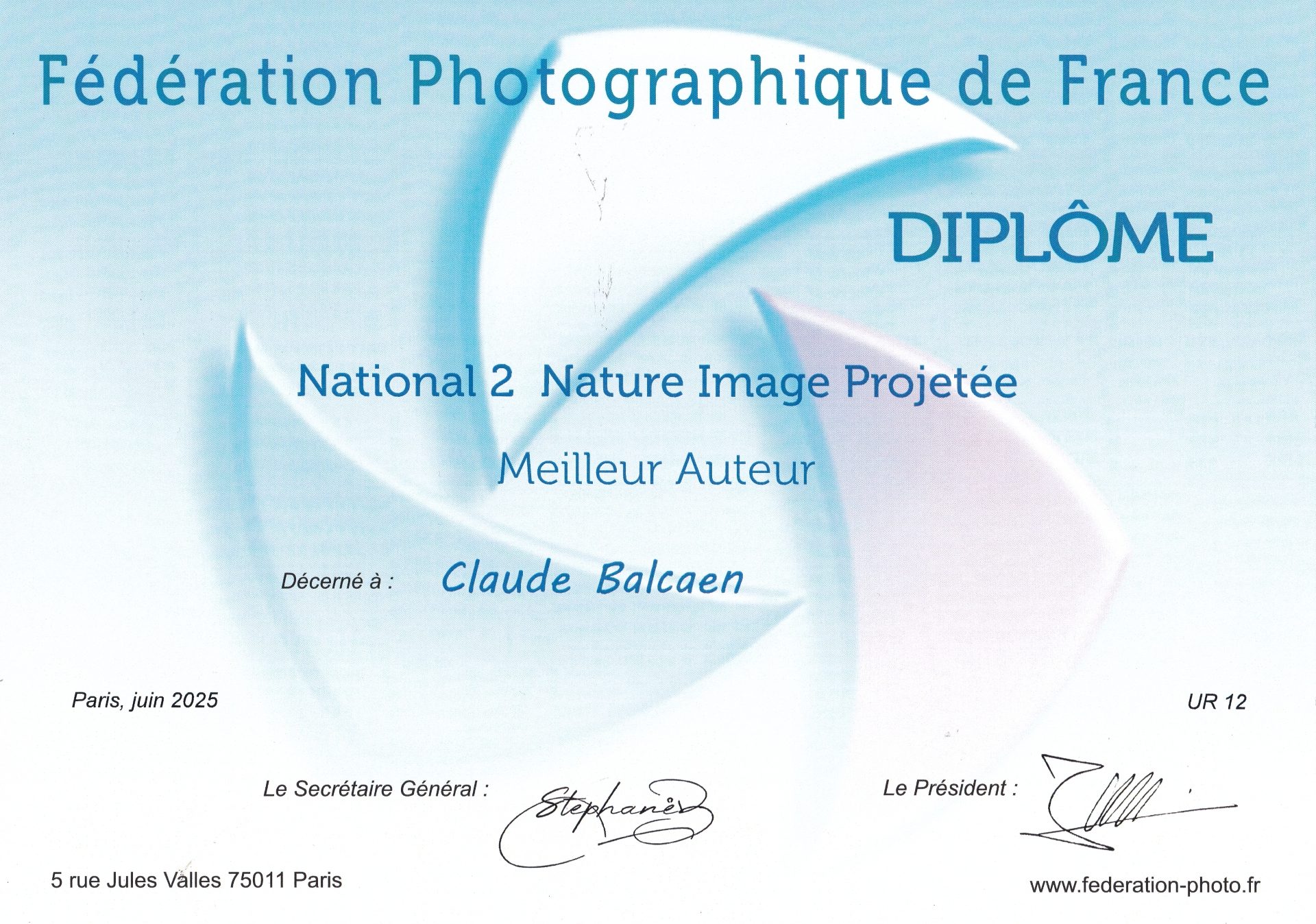 Claude BALCAEN - 2eme prix Auteur Image projetée nature - UR12 - 2023 2024